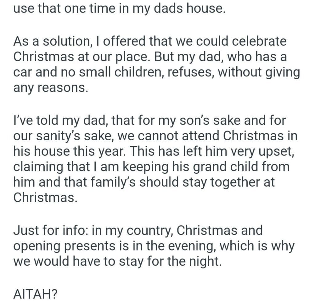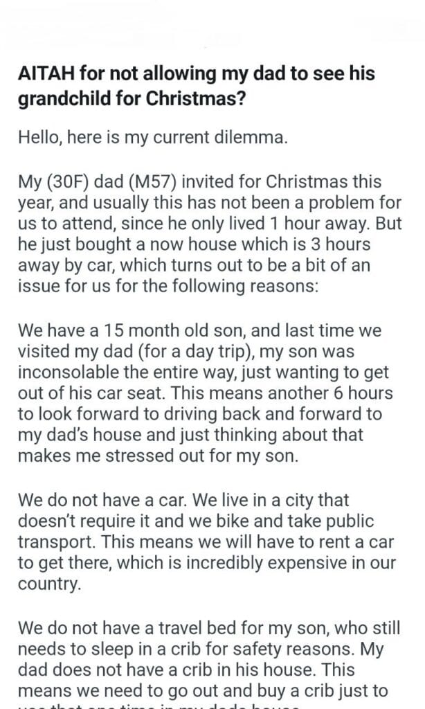 his grandchild for Christmas Related Posts my dog’s puppies’ vet bills a child with my girlfriend my friend stay in my second property my parents marriage by finding my bio father Because I’m the woman AITAH for telling my BIL that helping I didn’t AITA for demanding my colleagues my GF’s phone AITAH for telling my SIL daughter lives for free with us AITA for changing the wedding venue my fiancé her parent can’t live with us my husband’s friend to stay in our house picking her up at the airport at 3AM