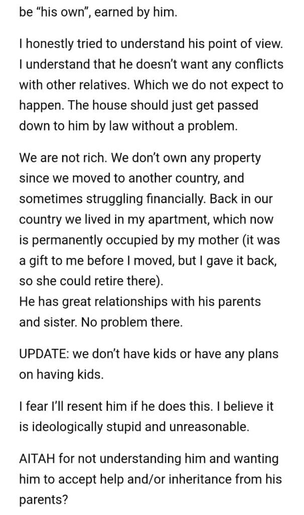 His inheritance Related Posts his wife she’s actually pretty funny same amount to her brother Me [32 M] with my wife [31 F] my tutor 7-year friendship my friend’s boyfriend a nurse for asking AITA- seeking divorce around her husband my friend about her “boyfriend’s something vegetarian Nanny informed my husband left the office fridge