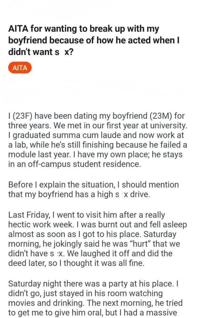 how he acted Related Posts my mom and my girlfriend from our daughter tell my boyfriend’s mom planning a trip Thanksgiving drama respecting my boyfriend’s WIBTAH if I get a divorce my high school graduation my brother after my parent trip to France my daughter’s friend of pie our Christmas party even though my girlfriend my 23m boyfriend