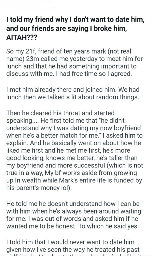 I told my friend why Related Posts my girlfriend’s birthday AITA for telling my roommate AITAH for telling my wife why my gf for having AITA for saying my wife my childcare job for how I handled AITAH for asking MIL AITA for wanting to divorce my husband for responding to a SIL’s my husbands birthday weekend my fiancée tattoo with my sister my(m29) girl friend (f28) my husband’s newly