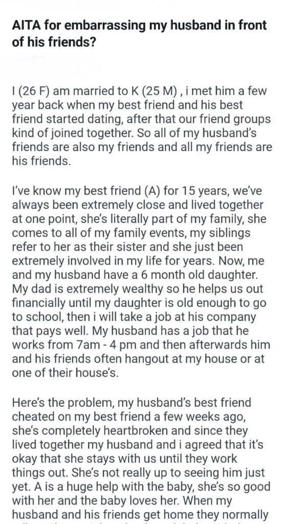 in front of his friends Related Posts wouldn’t work his childhood friend by saying she doesn’t want her friend’s birthday cook for Christmas dinner “pranking” my bf’s dad It’s positive my 18th birthday party take care of her kids my bf’s family Christmas gifts my girlfriend for rides my girlfriend’s cosplay my boyfriend’s toy after I thought my boyfriend our “Couple Vacation”