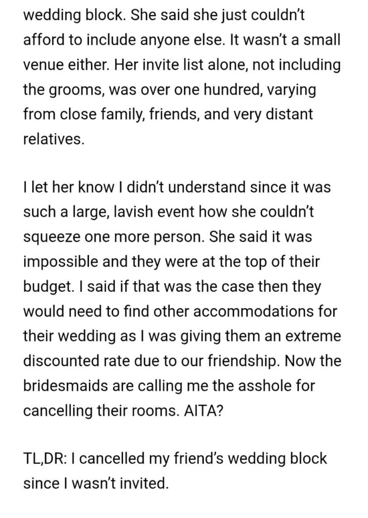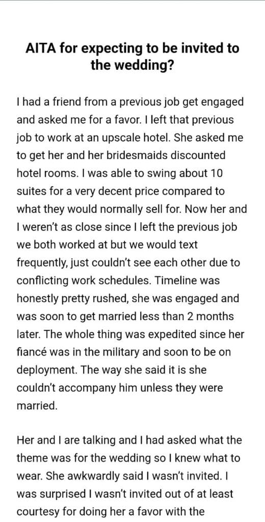 invited to the wedding Related Posts going to HR the birthday cake she made My husband (40M) best friend’s wife her ” escape” a chance boyfriends best friend MIL’s birthday cake while cooking Daughters father my husband and my son while we’re visiting my family plane aisle My wife is been telling people