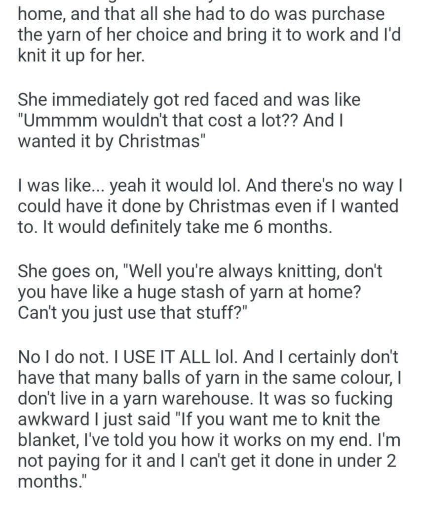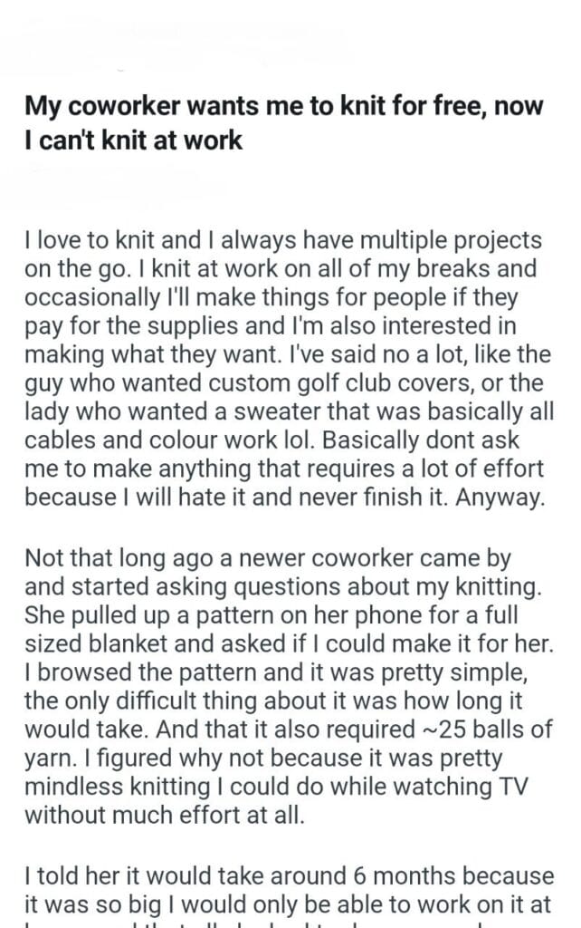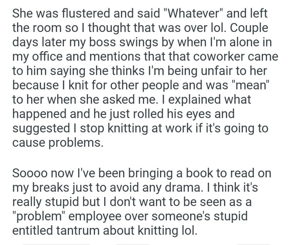 knit at work Related Posts even though I’ve always boss’s PTO my personal needs for what her grandparents said wife’s espresso giving my husband food babysit my sister’s kid a text I sent WIBTA if I called telling my friend’s bf say in this part with serious issues 100+ year-old heirloom Mechanic tries his new girlfriend to christmas