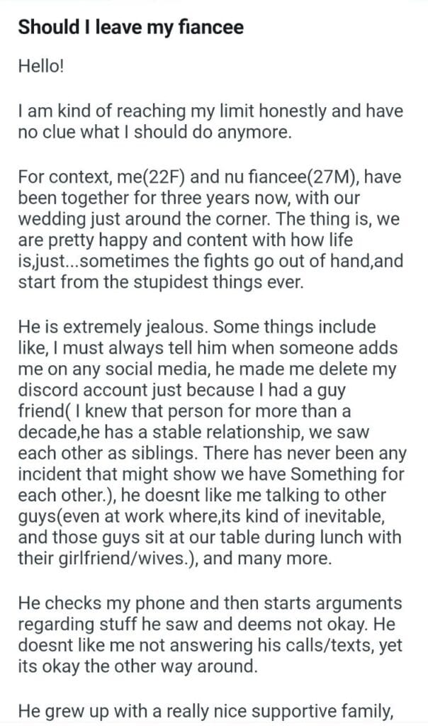 leave my fiancee Related Posts my 4 year old my friends kids combining income her looks tipping 83 my GF (29F) of 5 years keeping 700 my son that his cat’s my dad getting remarried some sportswear my dad’s house and telling him for not telling my cousin my future salary the office Christmas decorations