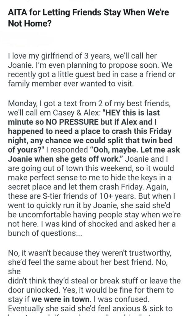 Letting Friends Stay Related Posts Aiw for telling my friend for a few minutes my family’s house services rendered planning a trip to Europe washing my hands my son clothes my daughter’s door tipper’s pizza for telling my brother boyfriend’s coworkers and boss for ordering homeschool my children while feeding baby what he just did