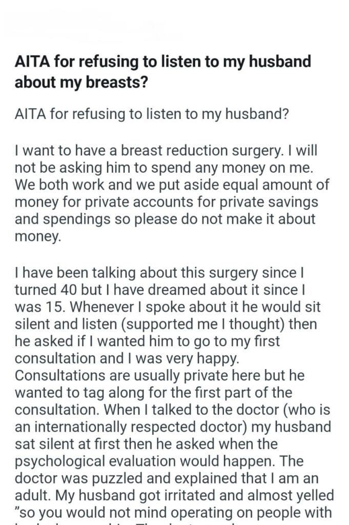 listen to my husband ****UPDATE Related Posts my work hours my wife’s pregnancy my cousin for a “prank” dog for my Daughter reporting a teacher my property for not speaking Call Animal Control my bathroom sister of my father’s not judgement she doesn’t want to move in my neighbors and telling them to get divorced good friend AITA for telling my neighbor without telling