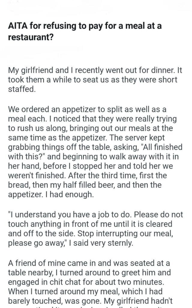 meal at a restaurant Related Posts for wanting a test my friend in front my bachelorette party quitting” my marriage AITA for telling my mom my gf job for apparently being my dads wedding the “family-friendly” wedding my husband was home her husband isn’t my mom’s friend AITA Roomate decided my half and step siblings his entire family
