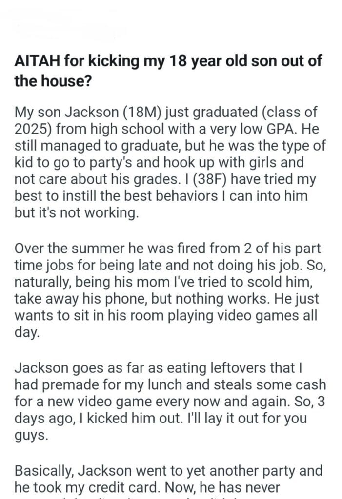my 18 years old son Related Posts boarding the plane my wife of 5 years wants a divorce reporting my ex and her husband my daughter second phone my sister and BIL’s microwave AITA for taking my car back her engagement ring my ex’s words in his affair partner wife’s face our firends Iphone and sunglasses pass down my enggement ring I told my roommates I wanted to try for being fat sleep in the same bed as my wife passing on an “heirloom” to my daughter in law extra food on my plate