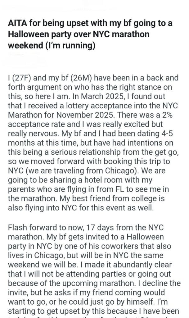 my bf going to a Halloween party Related Posts Thanksgiving with my sister her work Christmas party my partner’s my parents support Husband [29M] to specifically learn I’m changing my name my fiancé (m33) my best friend after the way I the baby monitor on for saying I will divorce my husband 600 a month attend family gatherings My husband’s son (28M)