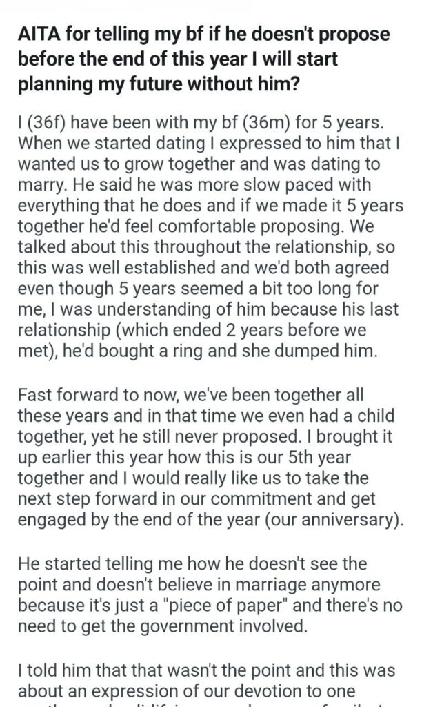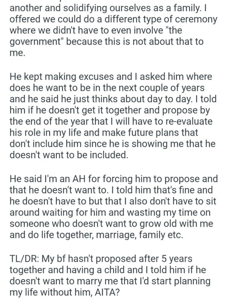 my bf if he doesn’t propose Related Posts my son half sister’s birthday party my roomate all night HER KIDS DREW ON MY WALLS moving to the other side of the world AITA for telling my dad “I’m officially my mom’s wife as a parent my husband’s sister take the daughter my child from playing video games AITA for asking my wife to make dinner My Daughter’s Wedding AITA for telling gf we’re either staying in hotel Should I let my boyfriend move in? AIO My ex-wife and her new husband AITA for bringing my own food AITA for wanting to move abroad