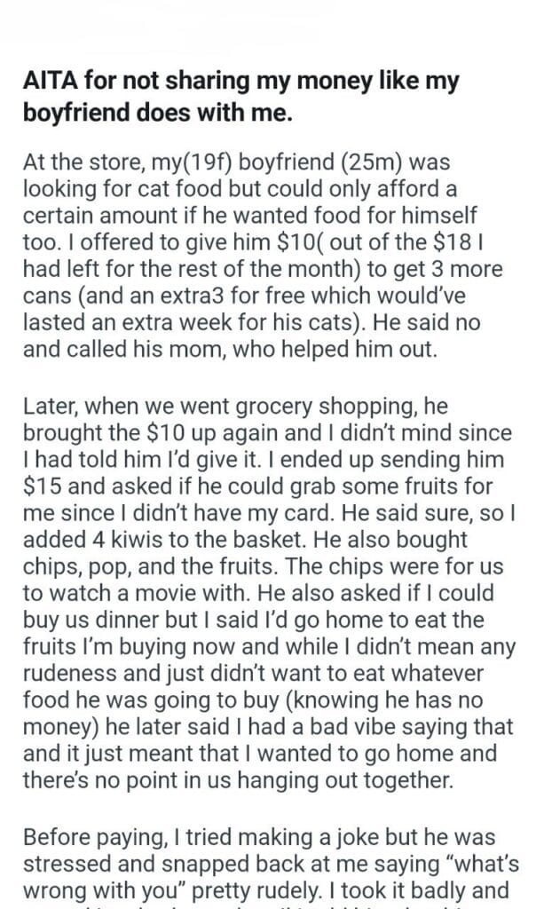 my boyfriend does with me Related Posts for letting my daughter WIBTA for divorcing my husband my MIL up my mom’s room my friends cats covering for my coworker my half sibling’s mom my son’s stepkids my pregnant fiancee walk the dog my friend’s dog my wedding guests refinance the car he left me something she gave away my work hours