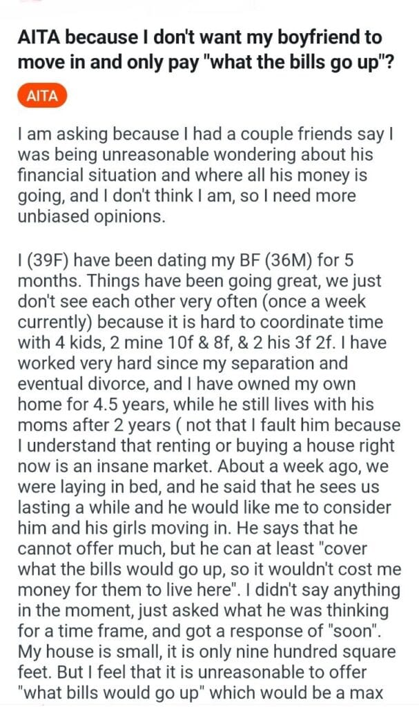 my boyfriend to move in Related Posts my paternal grandparents house My former coworker Not sure if before our wedding friendly conversations while we were separated my bridal party Visiting My GF my friend’s dinner while my roommate my mom’s bf my neighbors dog My man found My (27F) boyfriend (30M) after he said something