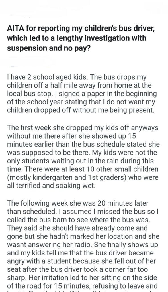 my children’s bus driver Related Posts memory book more towards bills telling my girlfriend my mom and siblings telling my mom on her porch bus driver my child telling my mother in law when they said my classic car my wife’s behavior a ride tip-out my wedding guest list