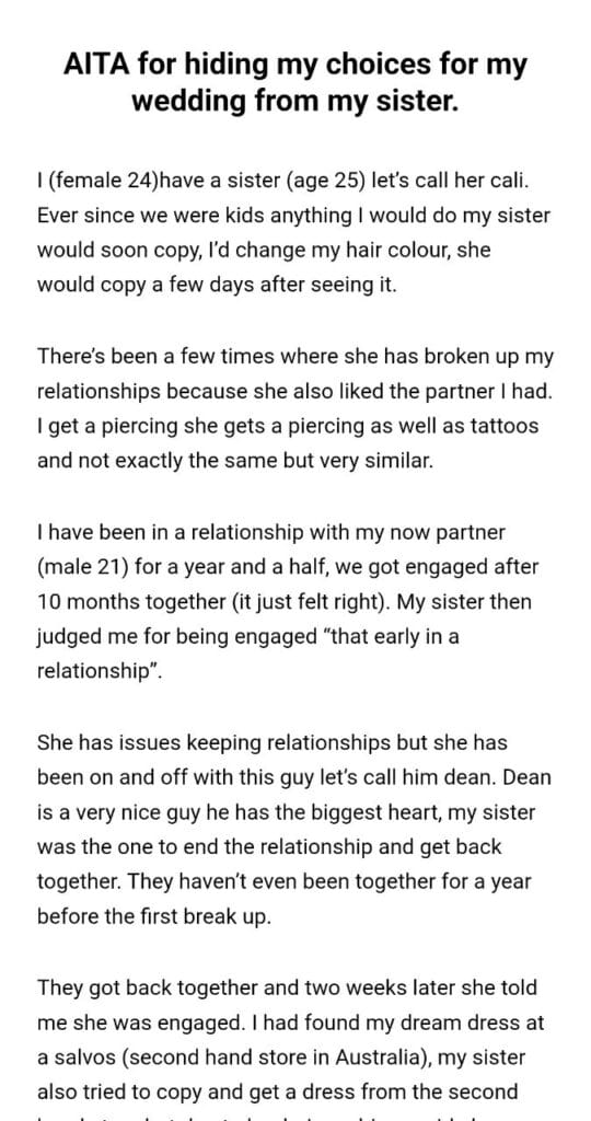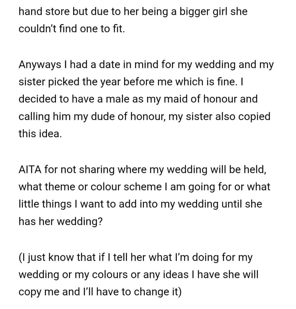 my choices for my wedding Related Posts my parent 5k 10x more my (25M) boyfriend about my driving telling my fiance if he from my Sisters in laws my friends toddler my dad’s Christmas party multiple times with my Daughter My boyfriend 22M my mom and her husband for all my nephew and nieces my ex-wife’s child ex showed up