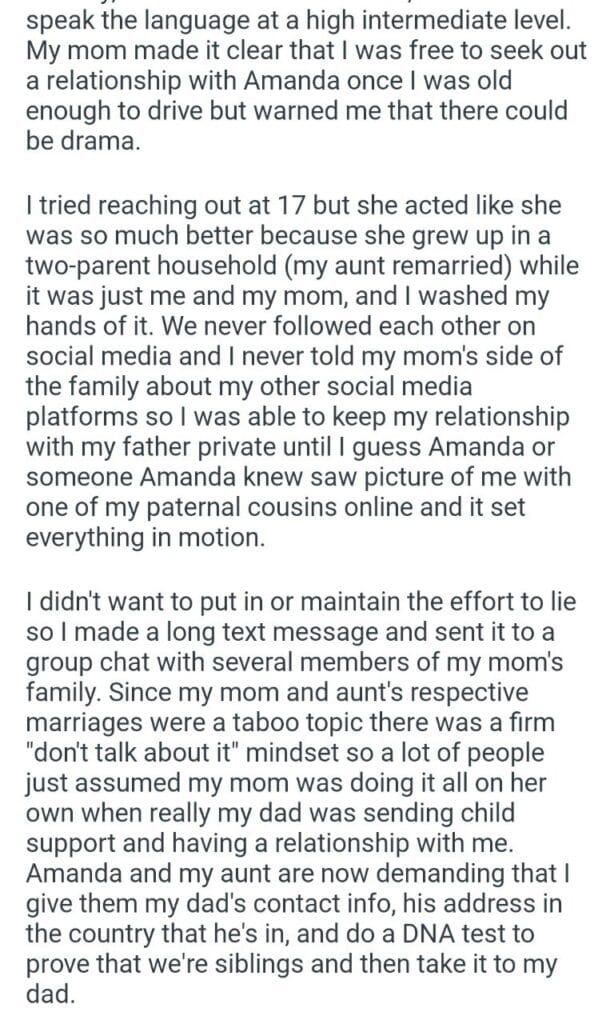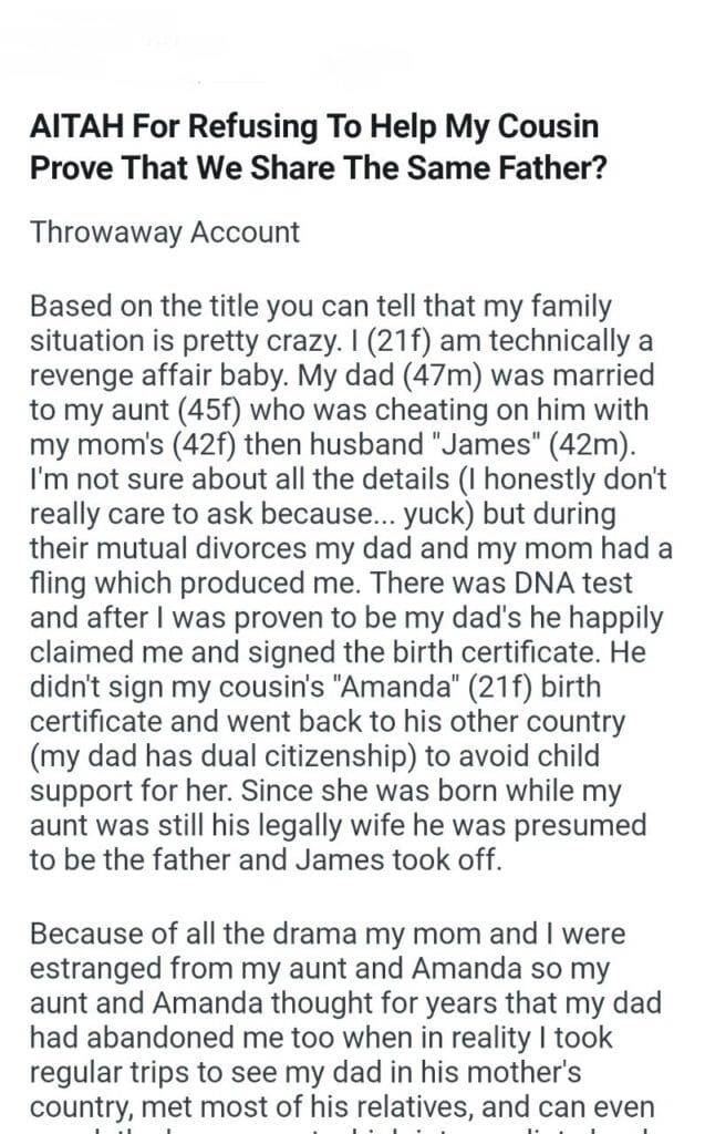 My Cousin Prove Related Posts my family that I found complaint investigation the family I tutor father’s daughter Christmas presents for my step daughter my child’s teacher name my kid my husband’s belongings be a stay-at-home wife changing holiday plans for saying if you my needs over my sister’s (18) boyfriend’s (18) my (35f) friend (36f) private party