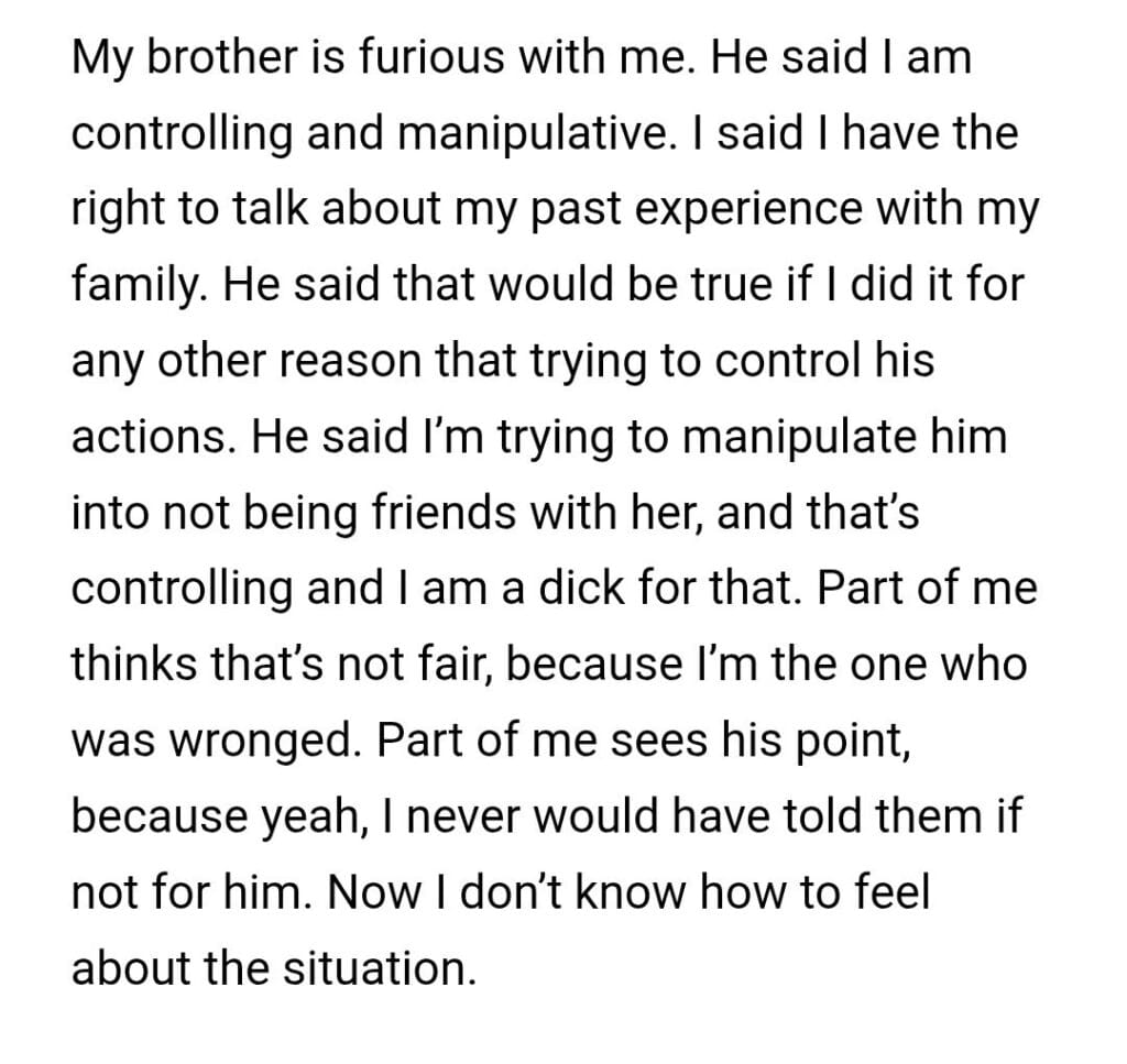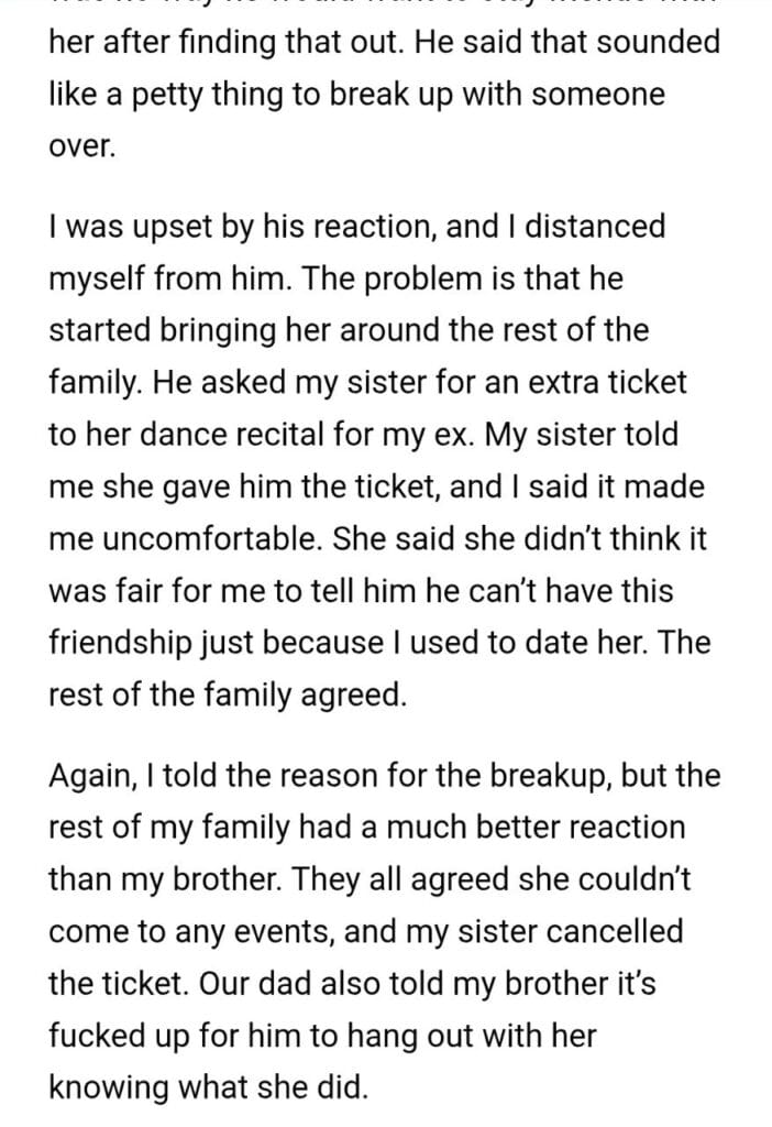 my entire family Related Posts woman’s purse my daughters dad my best friends’ wedding discoveries visible bedrooms with me My (32f) boyfriend (36m) telling her dad going on vacation after what the waitress did entertain some kid she lives with me my younger sister asking my best friend aitah for divorcing my husband over his mother makes