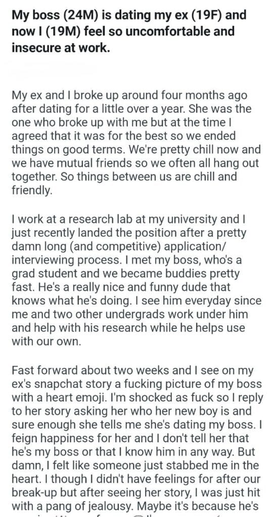 my ex (19F) and now I (19M) Related Posts My wife said something my partner everyday my GFs worldview my father’s stepkids AITA for telling my mil Aita for scheduling my fiancé told me “this is it, take it or leave it. for disinviting a coworker my manager couldn’t handle the plans we made in October our Halloween to stay as we’d originally planned answering my door our children’s lives she was “brutally honest” WIBTA if i told my roommate