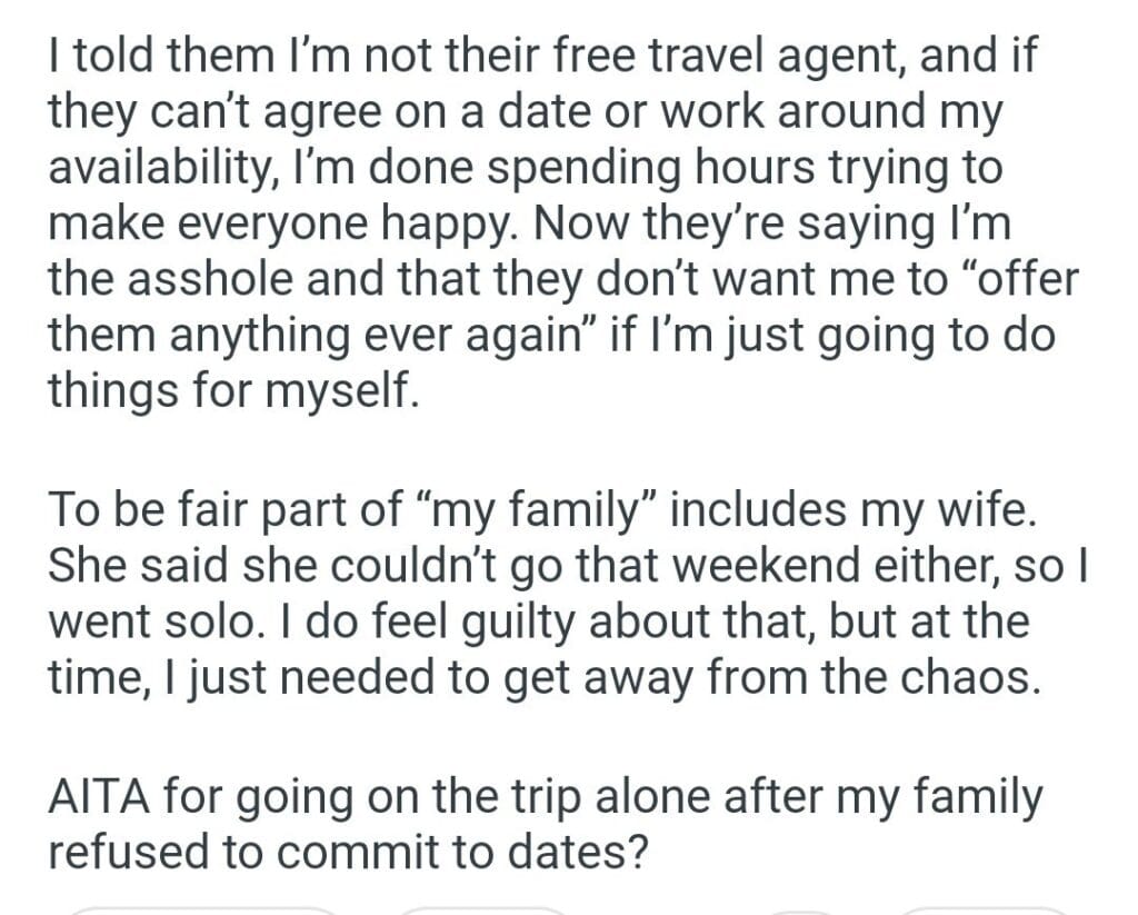 my family and wife Related Posts leaving my wife My dentist asked my old neighboor my chores his ex wife babysit my husbands kids go to Christmas Dinner my boyfriend’s family Thanksgiving My husband (36M) my best friend of 20 years another kid My Dad’s Christmas his wedding speech her and her children my sister and her husband