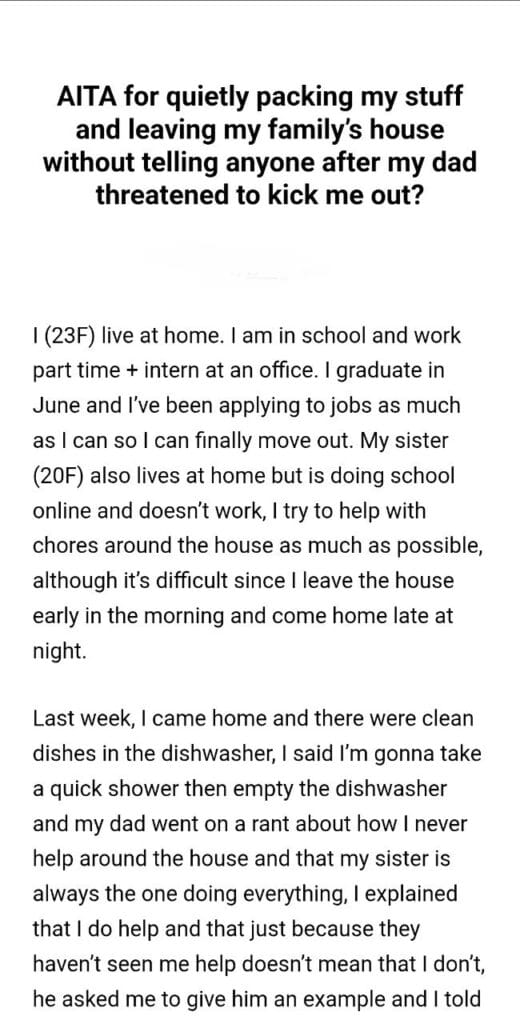 my family’s house Related Posts services rendered planning a trip to Europe washing my hands my son clothes my daughter’s door tipper’s pizza for telling my brother boyfriend’s coworkers and boss for ordering homeschool my children while feeding baby what he just did with my mom my son move in AITAH for wanting a divorce after