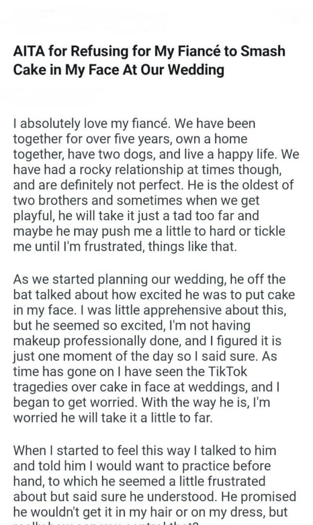 My Fiancé Cake At Our Wedding Related Posts AITAH for telling my BIL that helping I didn’t AITA for demanding my colleagues my GF’s phone AITAH for telling my SIL daughter lives for free with us AITA for changing the wedding venue my fiancé her parent can’t live with us my husband’s friend to stay in our house picking her up at the airport at 3AM my bf over Mariokart what my neighbor did my Dad and his wife after they refused my girlfriends wigs my GF did and asking for space