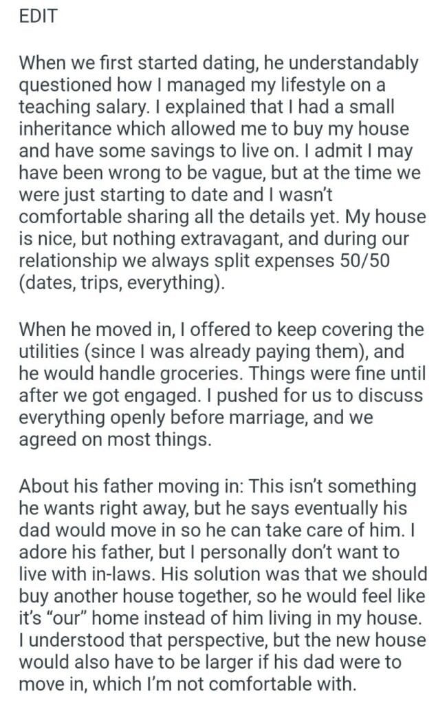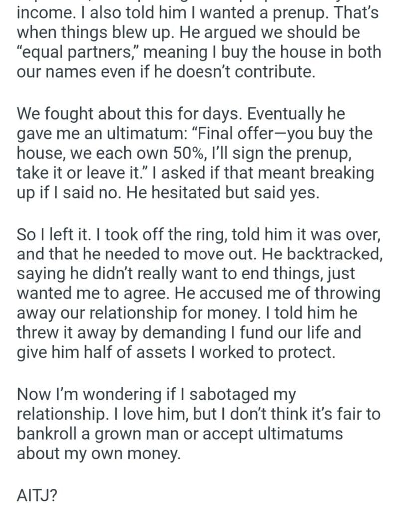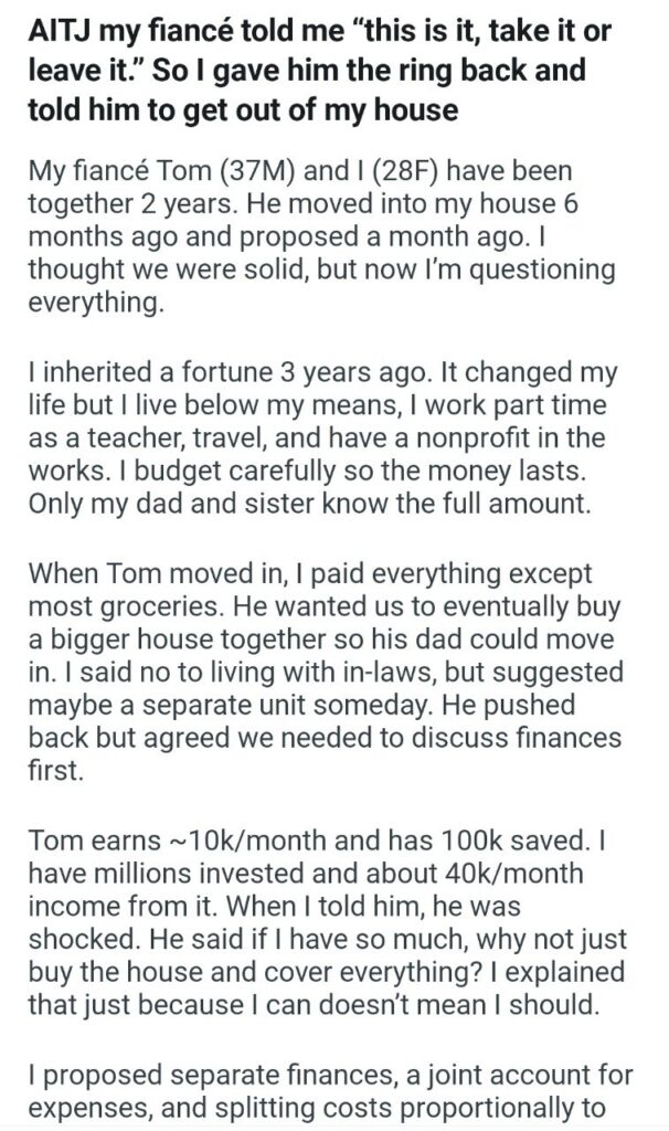 my fiancé told me “this is it, take it or leave it. ***UPDATE Related Posts AITA for telling my mil Aita for scheduling for disinviting a coworker my manager couldn’t handle the plans we made in October our Halloween to stay as we’d originally planned answering my door our children’s lives she was “brutally honest” WIBTA if i told my roommate they retired without planning reaching out to my sister daughter and step daughter separate account my sister in law needing the help
