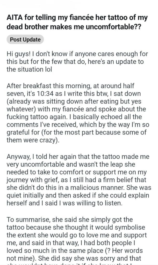 my fiancée tattoo ***UPDATE ***ANOTHER UPDATE ***LAST UPDATE Related Posts for responding to a SIL’s my husbands birthday weekend with my sister my(m29) girl friend (f28) my husband’s newly my wife’s phone sweets in the house my partner’s early birthday put my girlfriend my 16yro son eighth baby he went through my phone picture of my husbands wife he expects me to contribute the child my ex-wife had
