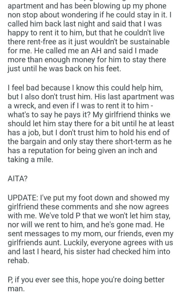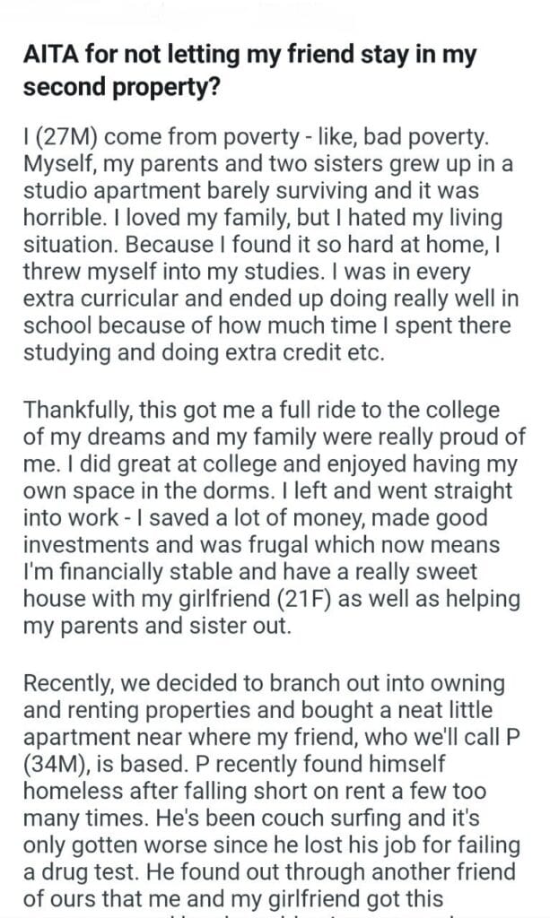 my friend stay in my second property Related Posts my dog’s puppies’ vet bills a child with my girlfriend my parents marriage by finding my bio father Because I’m the woman AITAH for telling my BIL that helping I didn’t AITA for demanding my colleagues my GF’s phone AITAH for telling my SIL daughter lives for free with us AITA for changing the wedding venue my fiancé her parent can’t live with us my husband’s friend to stay in our house picking her up at the airport at 3AM my bf over Mariokart