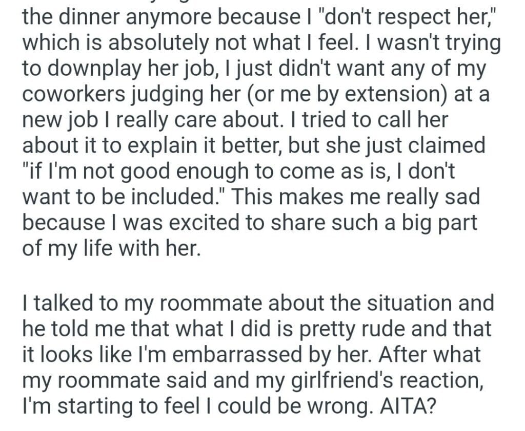 my gf job Related Posts my stepson AITA for telling my mom she telling everyone my Daughter allowing my Mom his accent for wanting a test meal at a restaurant my friend in front my bachelorette party quitting” my marriage AITA for telling my mom for apparently being my dads wedding the “family-friendly” wedding my husband was home