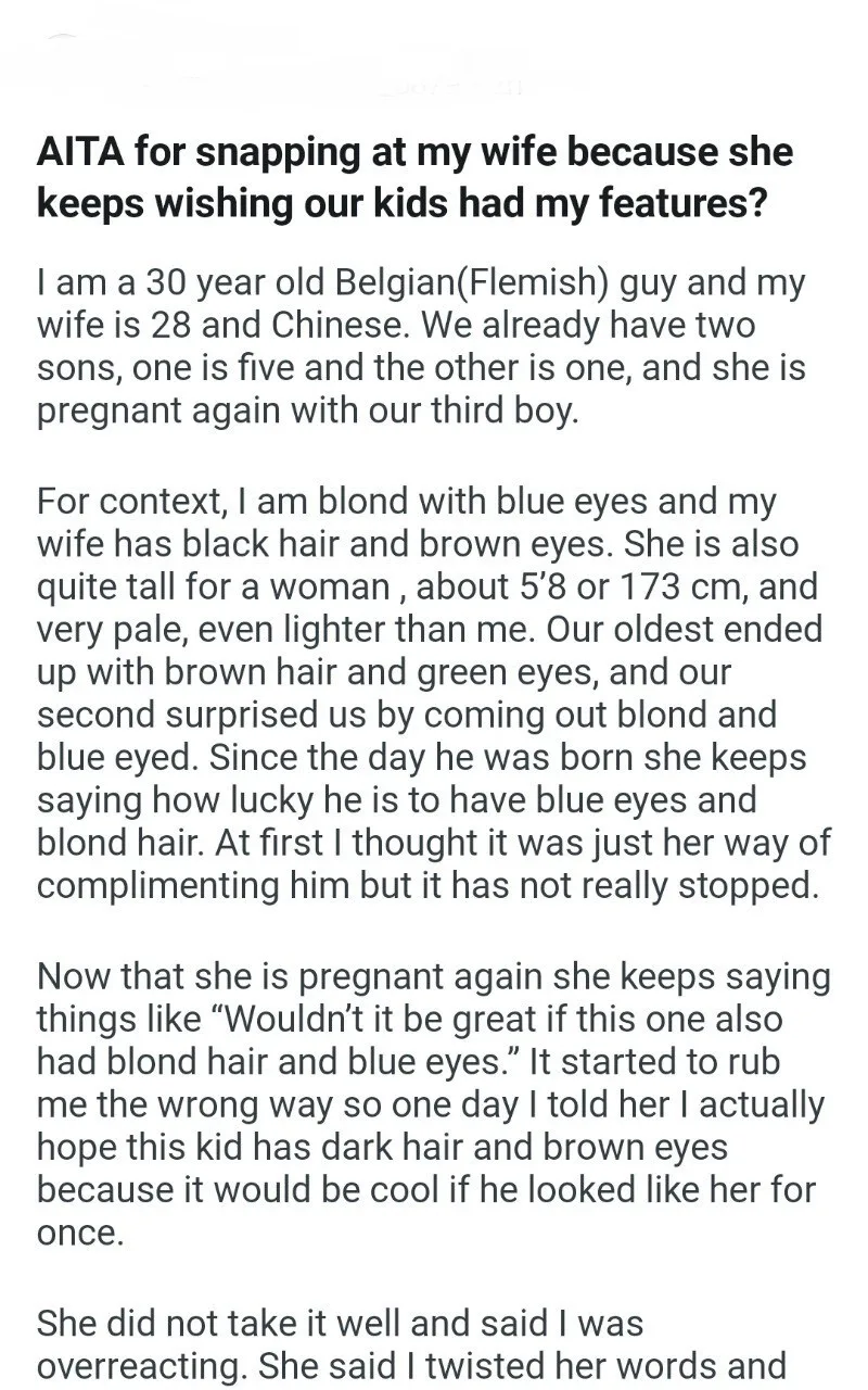 my husband and MIL out Related Posts she keeps wishing our kids had my features WIBTA if I don’t tell my dad for being too heavy a sleeper he’ll have to explain to why to her my step-sister borrow my wedding dress I refused because I have two small children. AITAH? what he did to me during my pregnancy I made my kids friend boarding the plane my wife of 5 years wants a divorce reporting my ex and her husband my 18 years old son my daughter second phone my sister and BIL’s microwave AITA for taking my car back