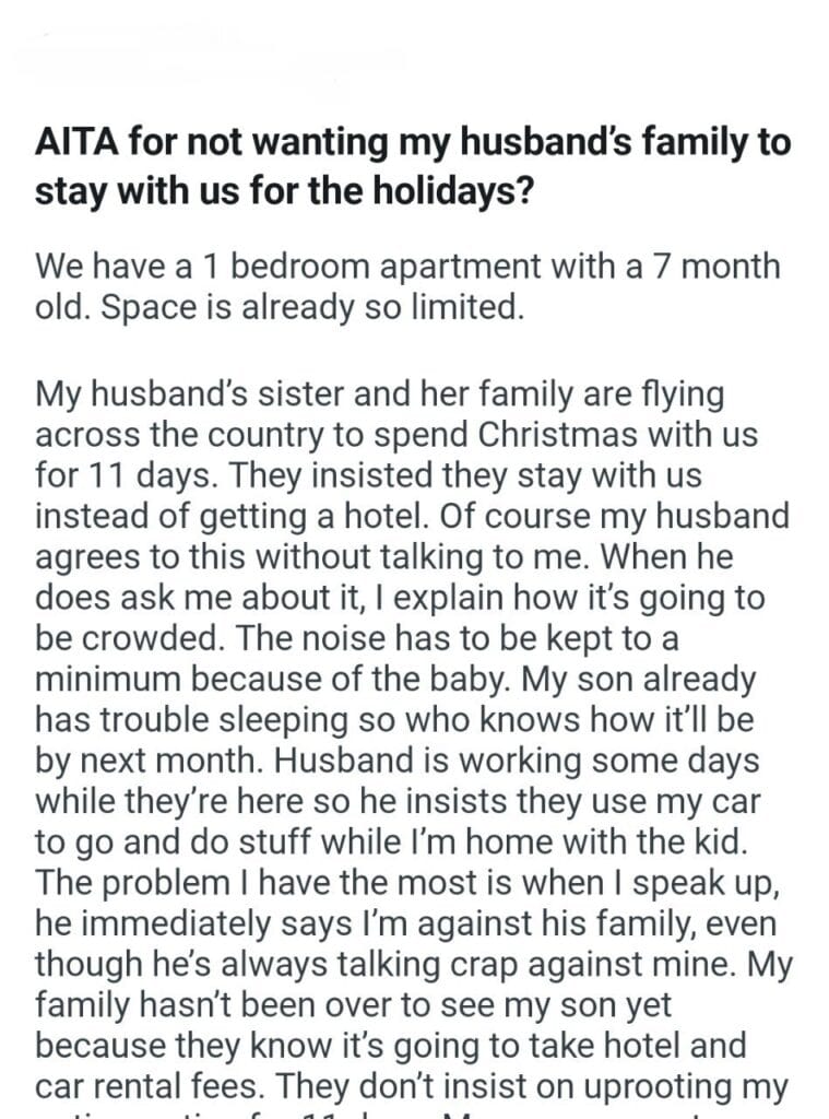 my husband’s family to stay Related Posts my children’s stepsiblings to certain things my brother his girlfriend is the reason ask my employee telling my neighbor and HOA after I found out wedding invitation after accepting my fiance’s family gifts my brother(and wife) My Husband and I My (24f) boyfriend (31m) for taking my kids have my friends doing something My [32F] husband [33M]