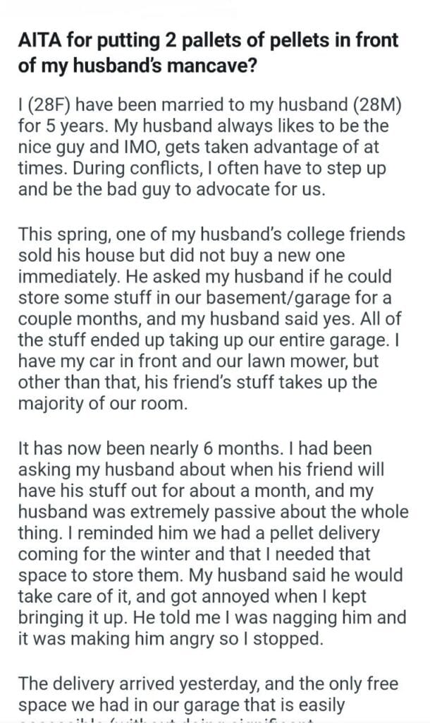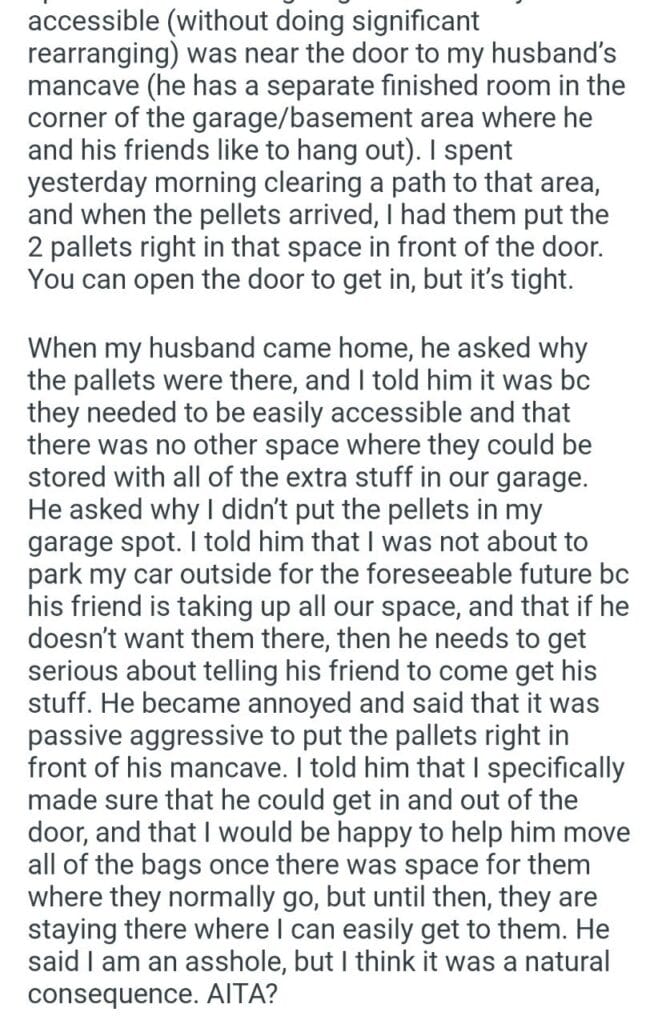 my husband’s mancave Related Posts bday party my flatmate set for me new meal 800 reward my sister’s best friend’s neighbors take out bag my husband business while I’m on maternity leave my daughters cat my girlfriend meals my sister’s wedding my husband by my side daycare for my son AITAH for saying to my wife that what she’s doing putting peanuts
