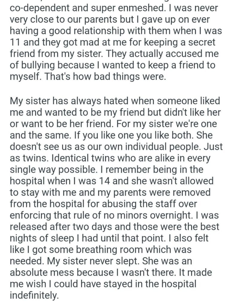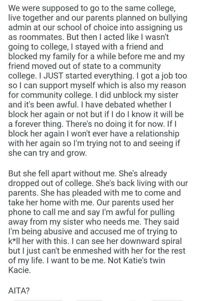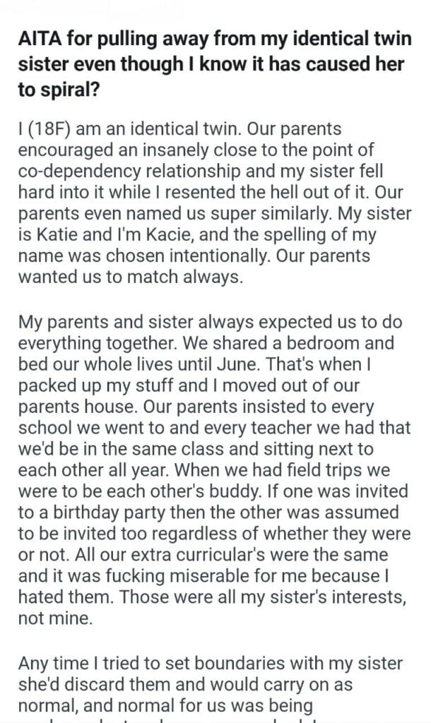 my identical twin sister Related Posts my wife with the dishes my mom’s boyfriend’s son my mom cooking friend to go hiking with me cousin on the family hike my mom’s boyfriend and his daughter my MIL the water my baby middle name 10 days before the wedding Mil’s at my wedding AITA: Named my son my step-son’s college fund on a hike the concert ticket I bought my friend AITA for telling my future sister in law