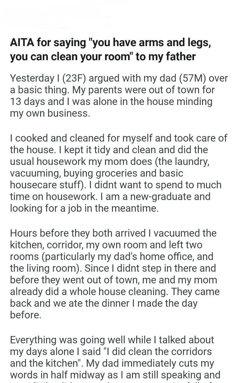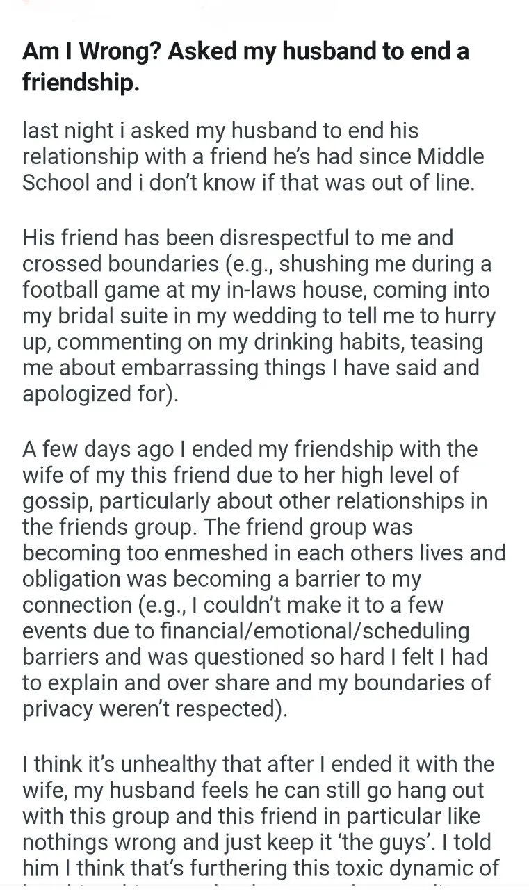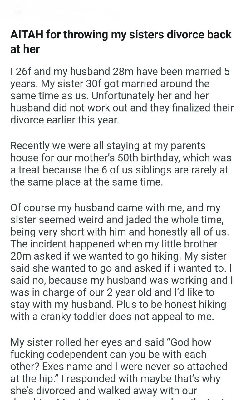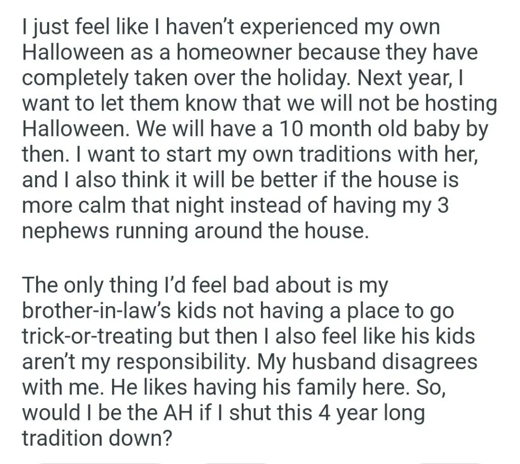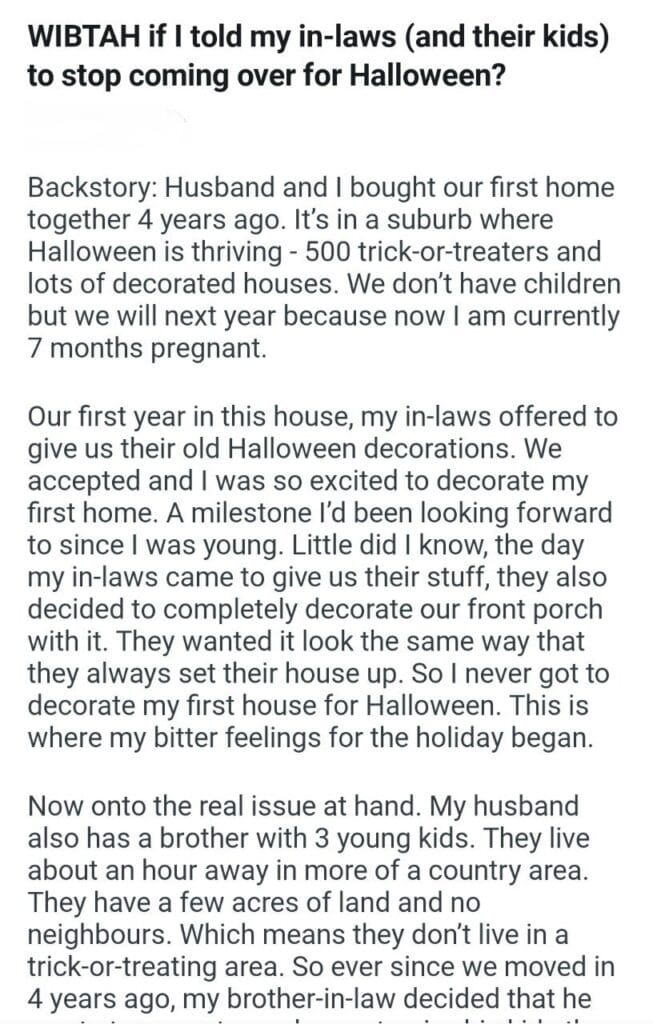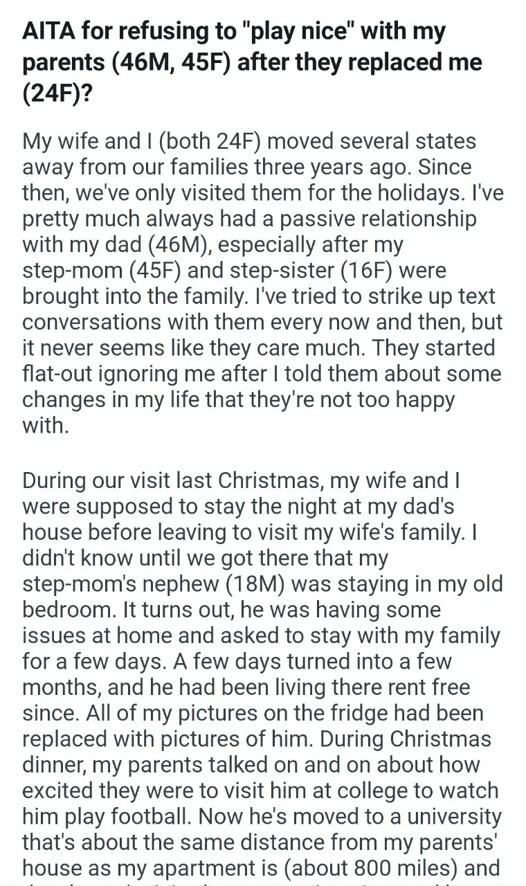 my in-laws (and their kids) Related Posts my sisters divorce clean your room my husband friendship my boyfriend’s cat police on my neighbours my parents (46M, 45F) for my bday Should I (25f) wanting to be for her university If I choose hers and her husband’s room for my sister’s wedding Husband(M36) giving my daughter