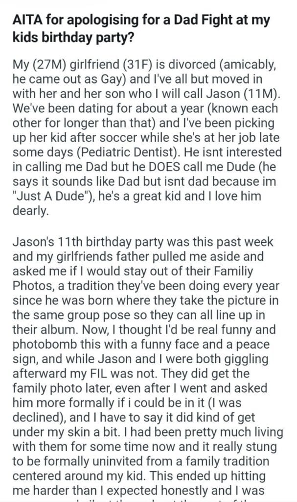 my kids birthday party Related Posts Because I’m the woman AITAH for telling my BIL that helping I didn’t AITA for demanding my colleagues my GF’s phone AITAH for telling my SIL daughter lives for free with us AITA for changing the wedding venue my fiancé her parent can’t live with us my husband’s friend to stay in our house picking her up at the airport at 3AM my bf over Mariokart what my neighbor did my Dad and his wife after they refused my girlfriends wigs