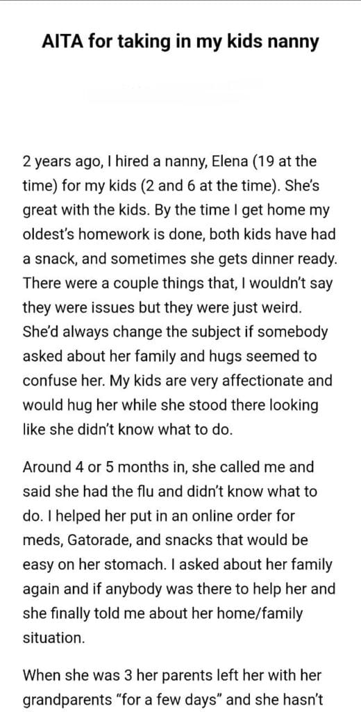 my kids nanny Related Posts asking my best friend aitah for divorcing my husband over his mother makes over a sock asking a pregant woman I don’t understand from her best friend divorce if my husband giving my housemate been the same since reacting right just because we are getting married at work my wife my daughter and I my wife because she