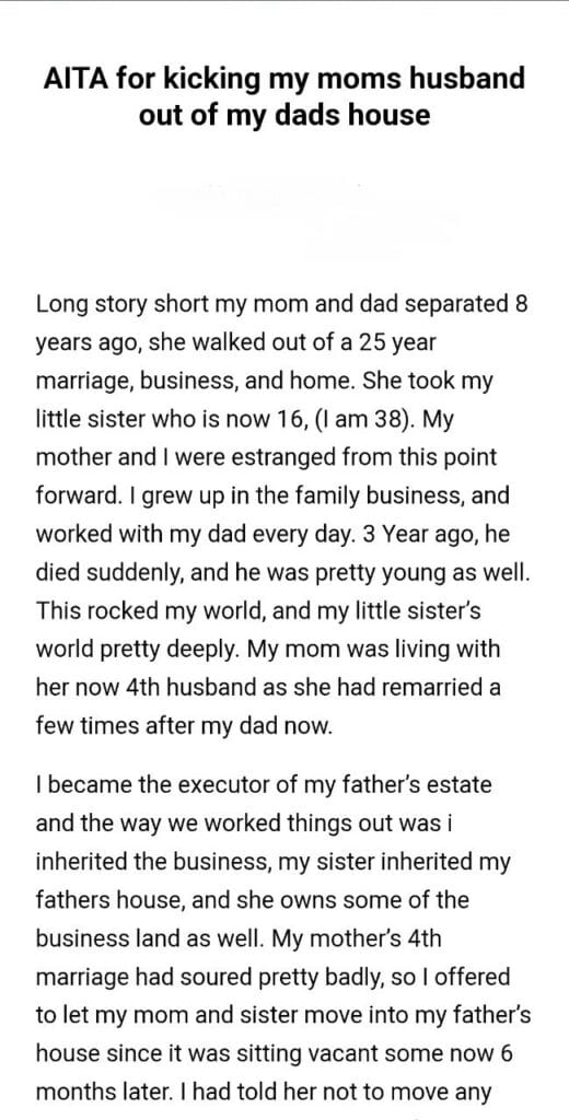 my moms husband Related Posts for letting my daughter WIBTA for divorcing my husband my MIL up my mom’s room my friends cats covering for my coworker my half sibling’s mom my son’s stepkids my pregnant fiancee my boyfriend does with me walk the dog my friend’s dog my wedding guests refinance the car he left me something she gave away