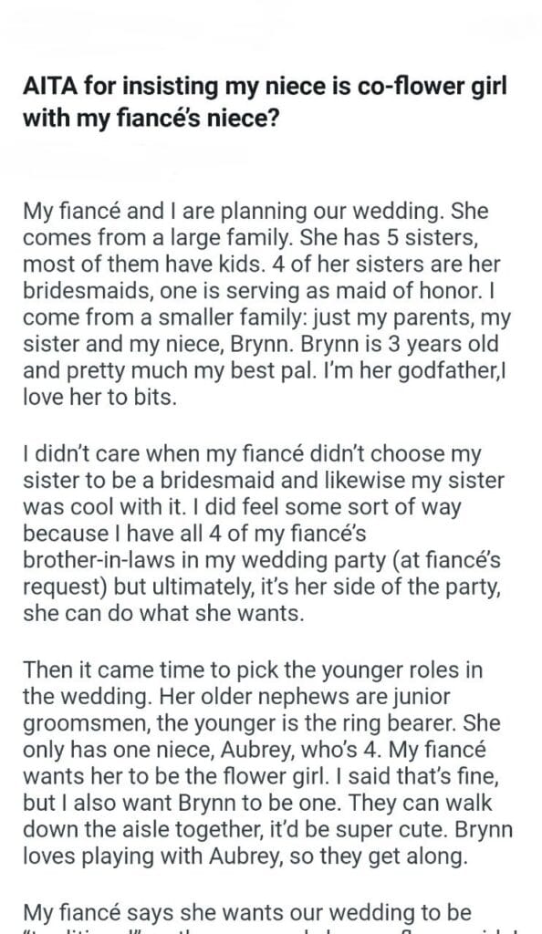 my niece is co-flower girl Related Posts my niece home food cooked for our sons be more important my brother in law on Christmas Eve my friend wears customer demands mother of 2 telling my wife’s family my fiancè handed my mom’s boyfriend his son my husband’s family to stay my children’s stepsiblings to certain things my brother his girlfriend is the reason