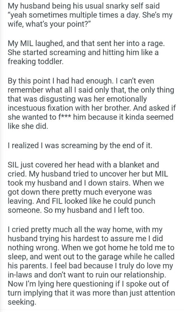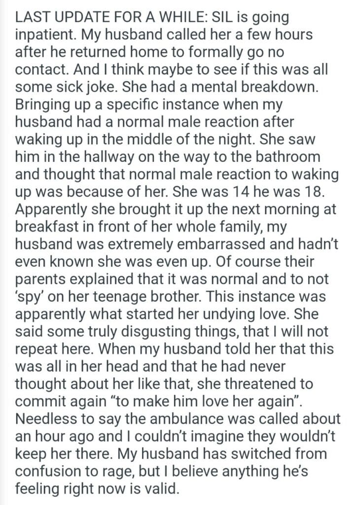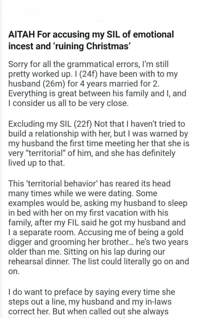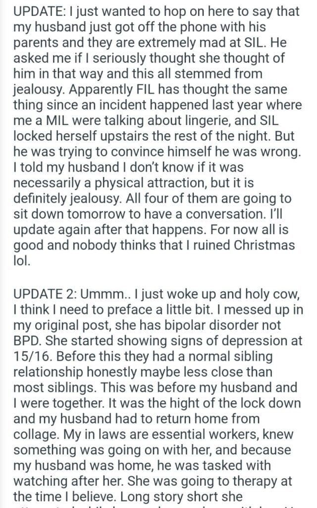 my SIL of emotional ***Update ***LAST UPDATE Related Posts making rules my sister wear my mom’s wedding dress my DIL she wasn’t invited my family’s Christmas dinner a kid’s Christmas calling my sil because of my looks when she gets married my car for work her best friend’s husband below my apartment my boyfriend after he chose me my SIL’s Christmas gift list how they treated me at my husband