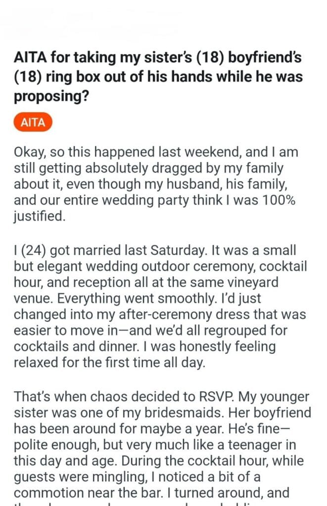 my sister’s (18) boyfriend’s (18) Related Posts my needs over my (35f) friend (36f) private party for calling my friend my best friend’s wedding wanting a relationship my friend for getting her own gift tags cousin deserved expensive Christmas gift whole chicken off work my restaurant my brother and his wife my husband 34M