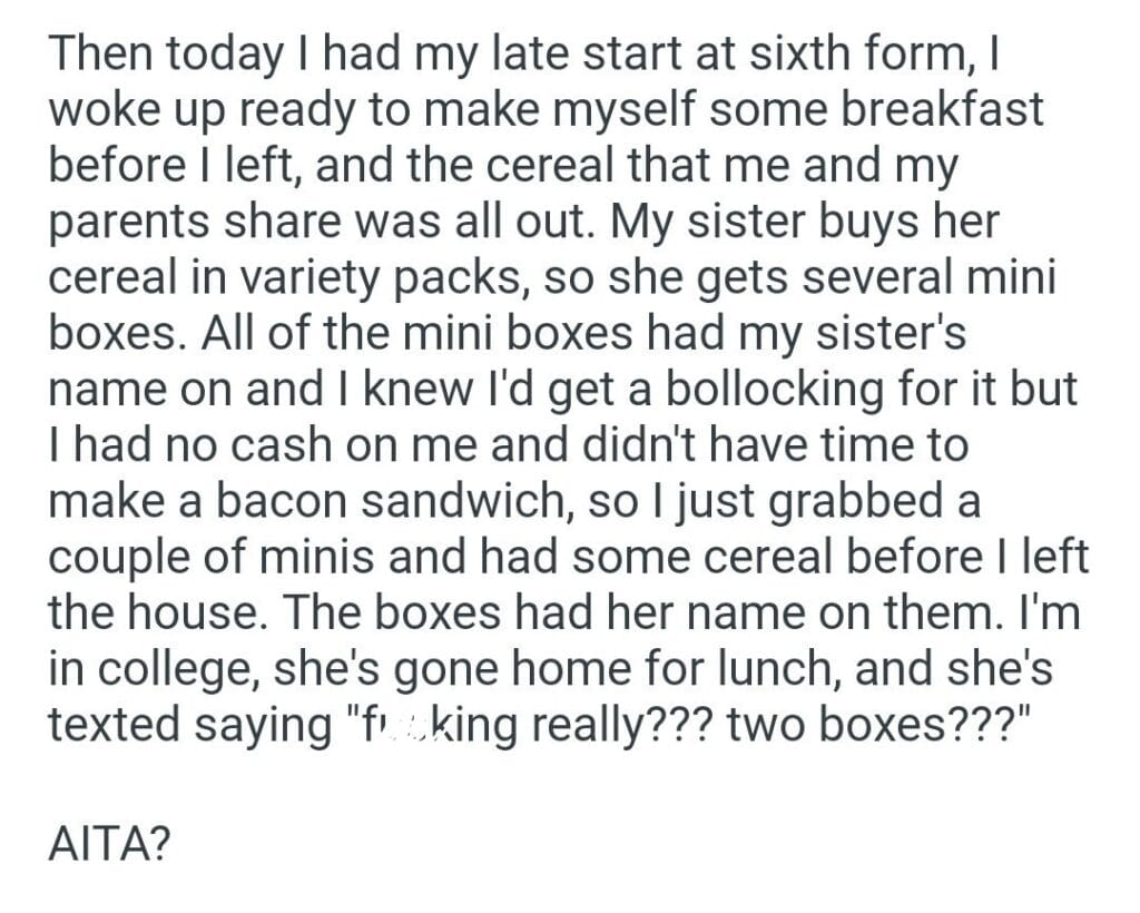 my sister’s food that our parents paid for Related Posts AITAH for telling my BIL that helping I didn’t AITA for demanding my colleagues my GF’s phone AITAH for telling my SIL daughter lives for free with us AITA for changing the wedding venue my fiancé her parent can’t live with us my husband’s friend to stay in our house picking her up at the airport at 3AM my bf over Mariokart what my neighbor did my Dad and his wife after they refused my girlfriends wigs my GF did and asking for space