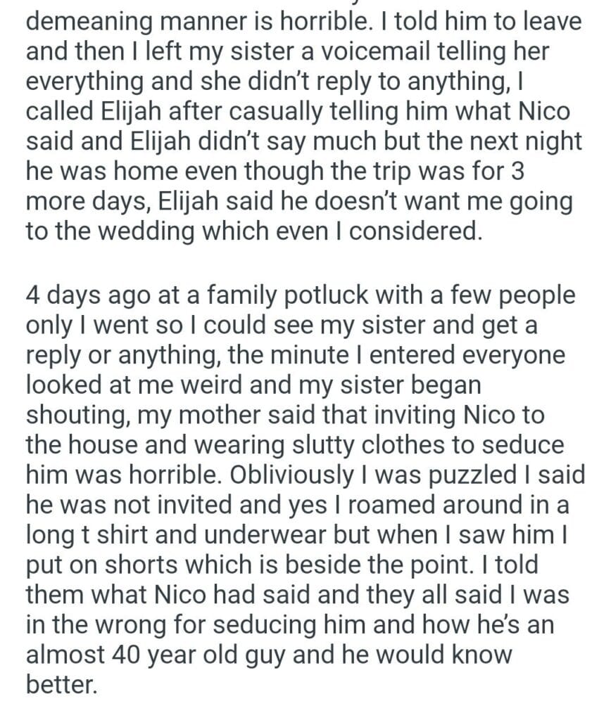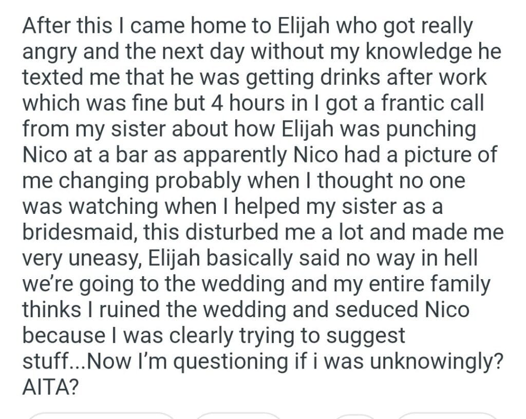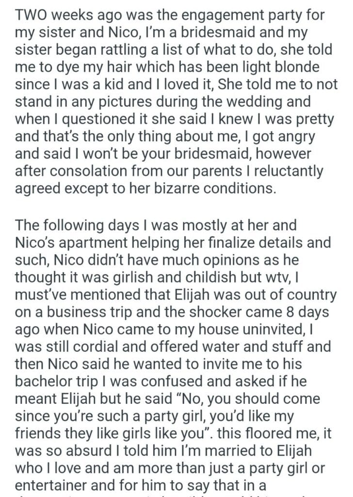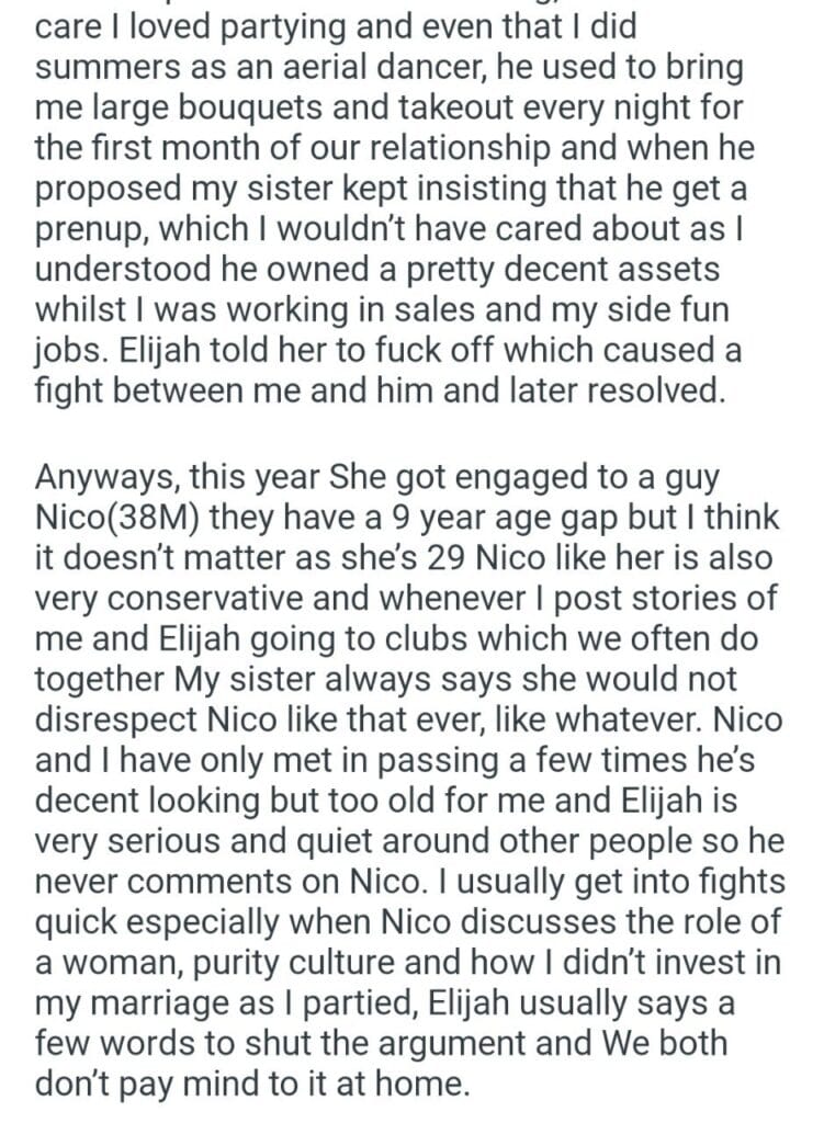 my sister’s wedding Related Posts My (27F) boyfriend (30M) after he said something she said she understood the baby shower surprise my son’s stepbrother telling my fiance for stepping back how my fiancé feels her new fence getting pregnant with my husband and father in law get married for telling my brother that my friend for taking she gets everything from them