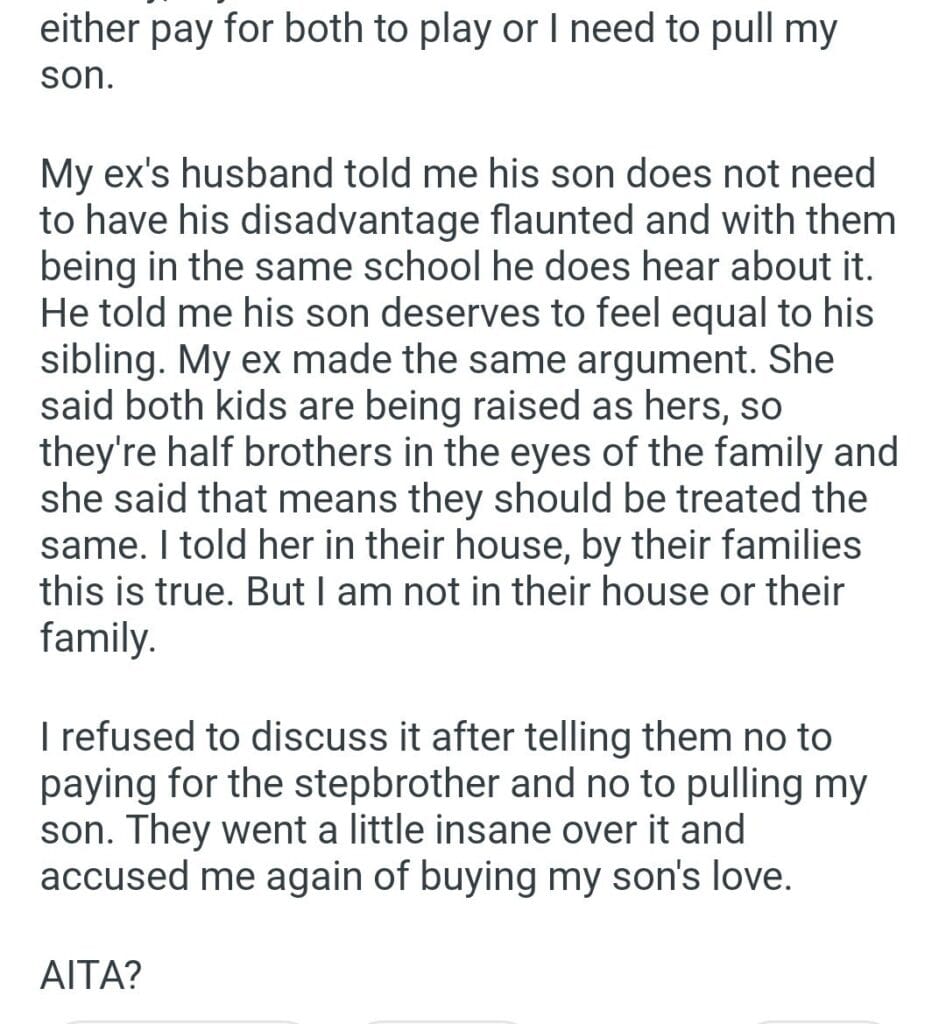 my son’s stepbrother Related Posts My (27F) boyfriend (30M) after he said something she said she understood my sister’s wedding the baby shower surprise telling my fiance for stepping back how my fiancé feels her new fence getting pregnant with my husband and father in law get married for telling my brother that my friend for taking she gets everything from them