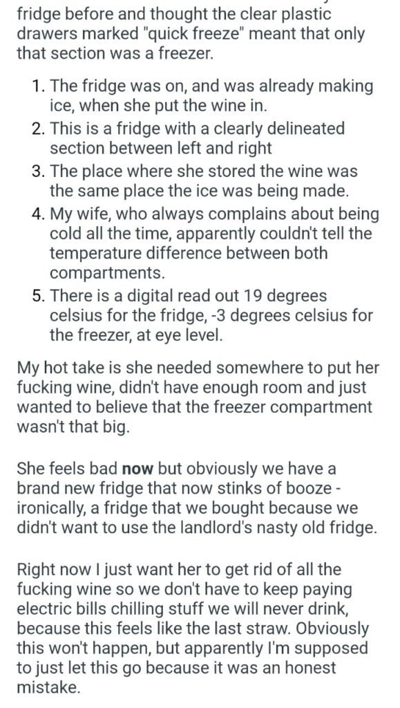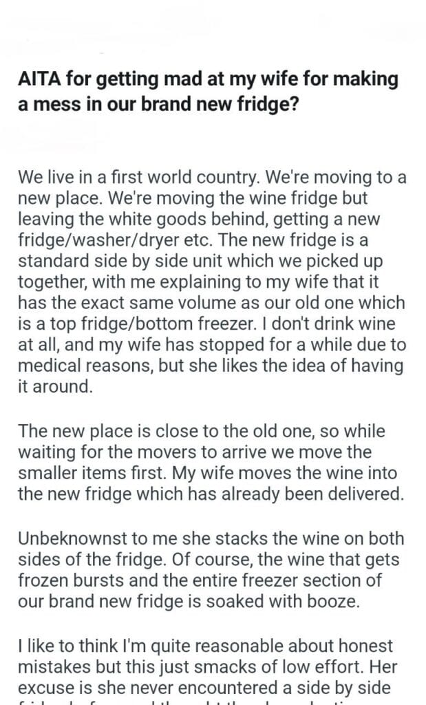 new fridge Related Posts My [32F] husband [33M] matter public wouldn’t work his childhood friend by saying she doesn’t want in front of his friends her friend’s birthday cook for Christmas dinner “pranking” my bf’s dad It’s positive my 18th birthday party take care of her kids my bf’s family Christmas gifts my girlfriend for rides my girlfriend’s cosplay