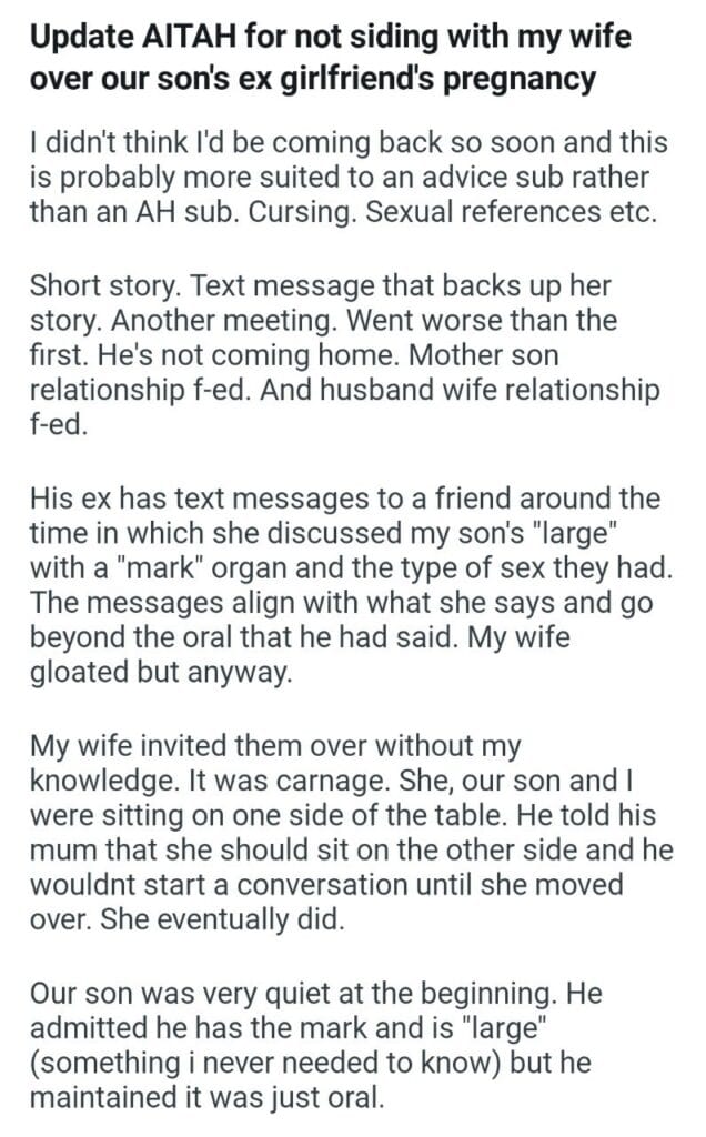 our son’s ex girlfriend’s ***UPDATE ***ANOTHER UPDATE Related Posts AITAH for telling my BIL that helping I didn’t AITA for demanding my colleagues my GF’s phone AITAH for telling my SIL daughter lives for free with us AITA for changing the wedding venue my fiancé her parent can’t live with us my husband’s friend to stay in our house picking her up at the airport at 3AM my bf over Mariokart what my neighbor did my Dad and his wife after they refused my girlfriends wigs my GF did and asking for space