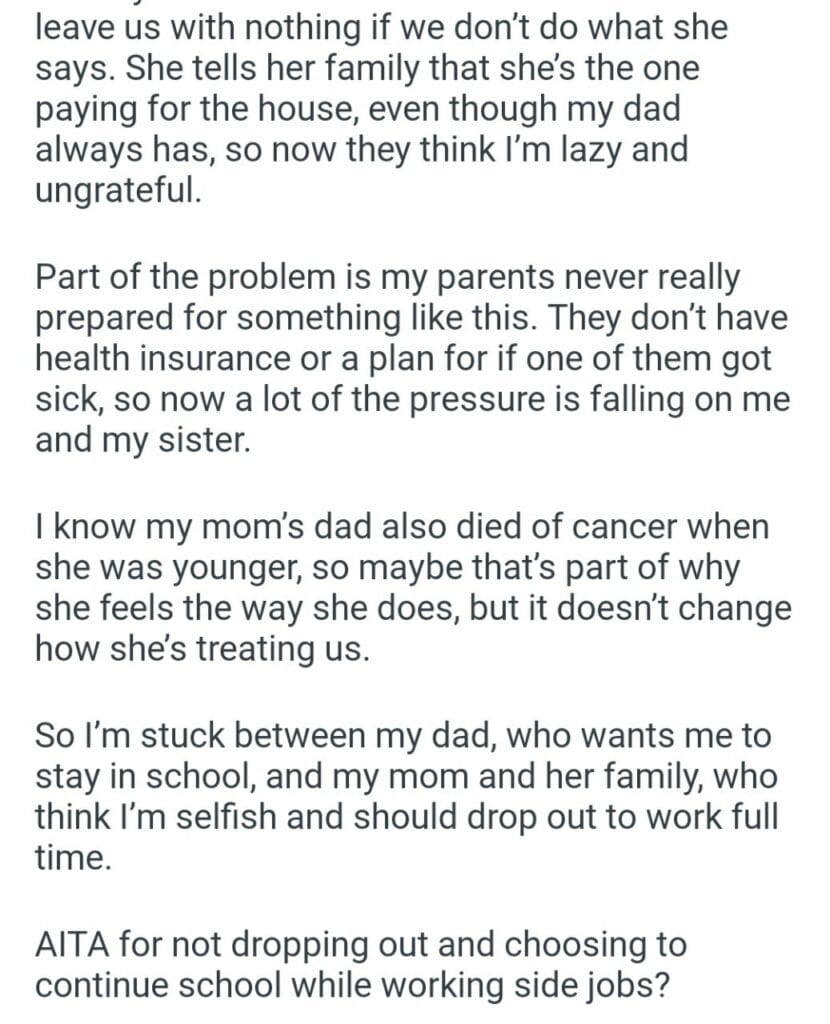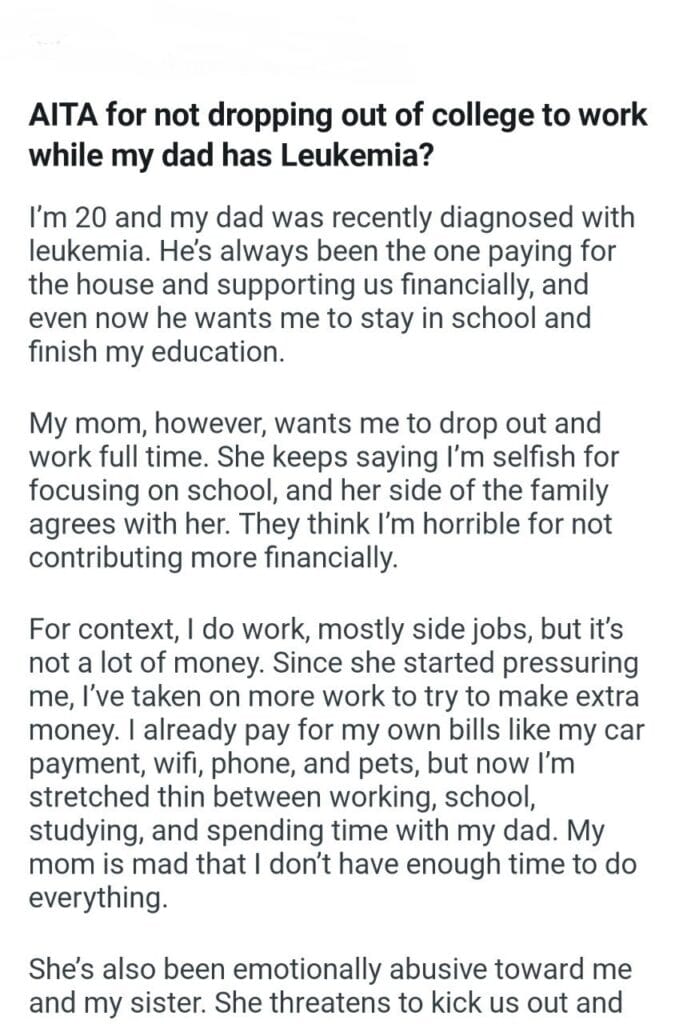 out of college to work Related Posts my dog’s puppies’ vet bills a child with my girlfriend my friend stay in my second property my parents marriage by finding my bio father Because I’m the woman AITAH for telling my BIL that helping I didn’t AITA for demanding my colleagues my GF’s phone AITAH for telling my SIL daughter lives for free with us AITA for changing the wedding venue my fiancé her parent can’t live with us my husband’s friend to stay in our house picking her up at the airport at 3AM