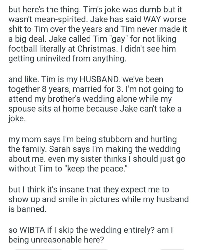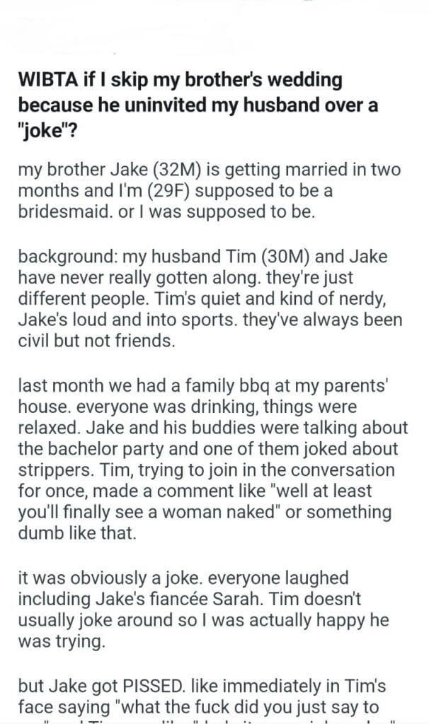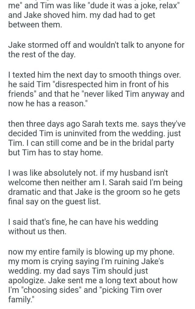 over a “joke” Related Posts into our marriage my (24M) husband for daycare is easily worth as our home My best friend wedding my friend along Me or my wife during my birthday dinner support I think the new tires for properly father deserves at the hospital a month before Christmas my mom’s holiday request