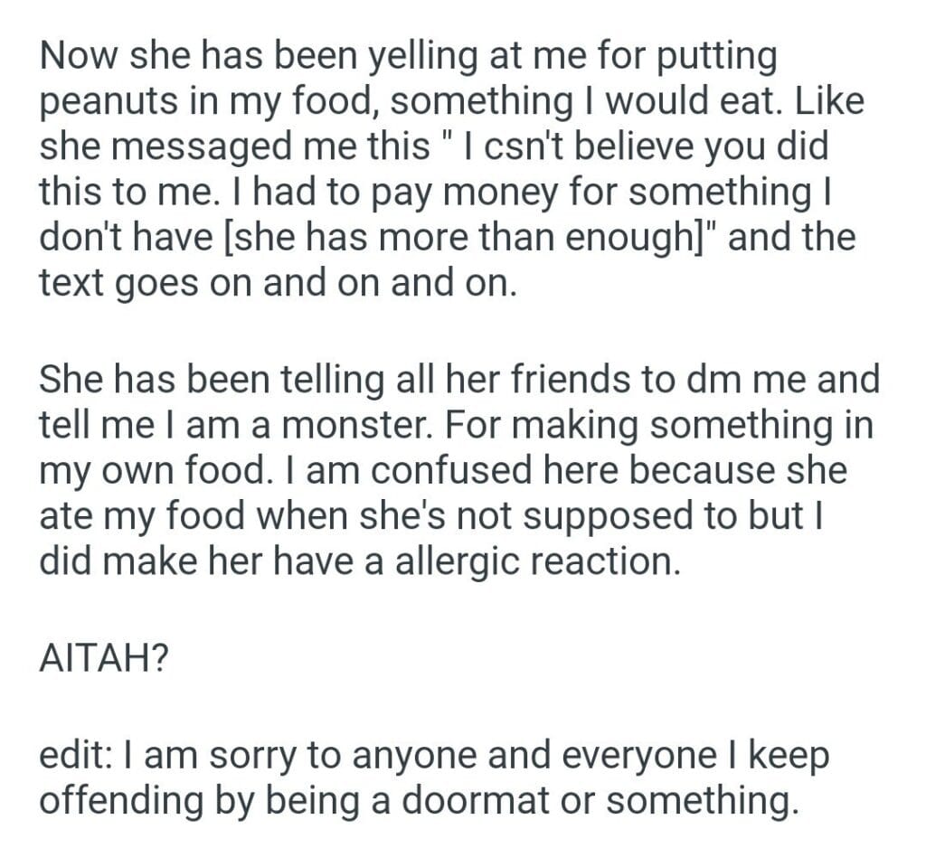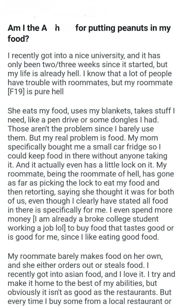 putting peanuts Related Posts completely changing my kids life AITA for telling my dad that if his wife AITA for asking my husband to take my office because my partner AITA for telling my mom with my boyfriend my husband lied my coworker boyfriend flight for my girlfriend my identical twin sister my wife with the dishes my mom’s boyfriend’s son my mom cooking friend to go hiking with me cousin on the family hike