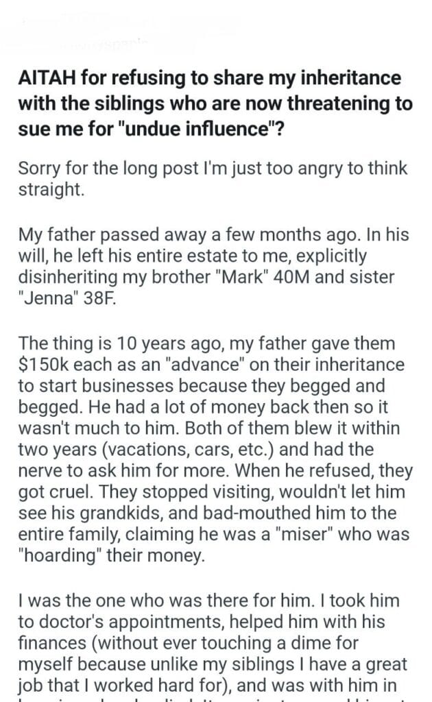 share my inheritance with the siblings Related Posts at my husband Christmas for my kids telling my boyfriend Im thinking sons bail choosing to get married secret from my family in middle school my private bedroom for marrying and having children work the holidays be having my wedding the way I want for how i responded nothing to do my car bills my nanny family
