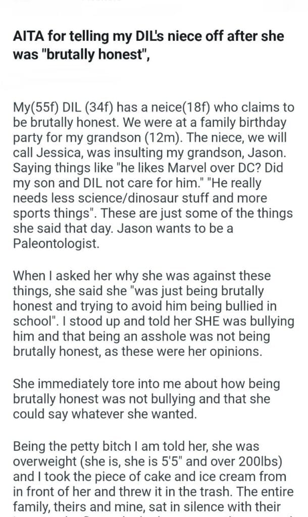 she was “brutally honest” Related Posts the plans we made in October our Halloween to stay as we’d originally planned answering my door our children’s lives WIBTA if i told my roommate they retired without planning reaching out to my sister daughter and step daughter separate account my sister in law needing the help my portion sizes in half AITA. I made my daughter (11) what I did to my stepmother the Shelf that was gifted to my kids by MIL deciding to separate our finances