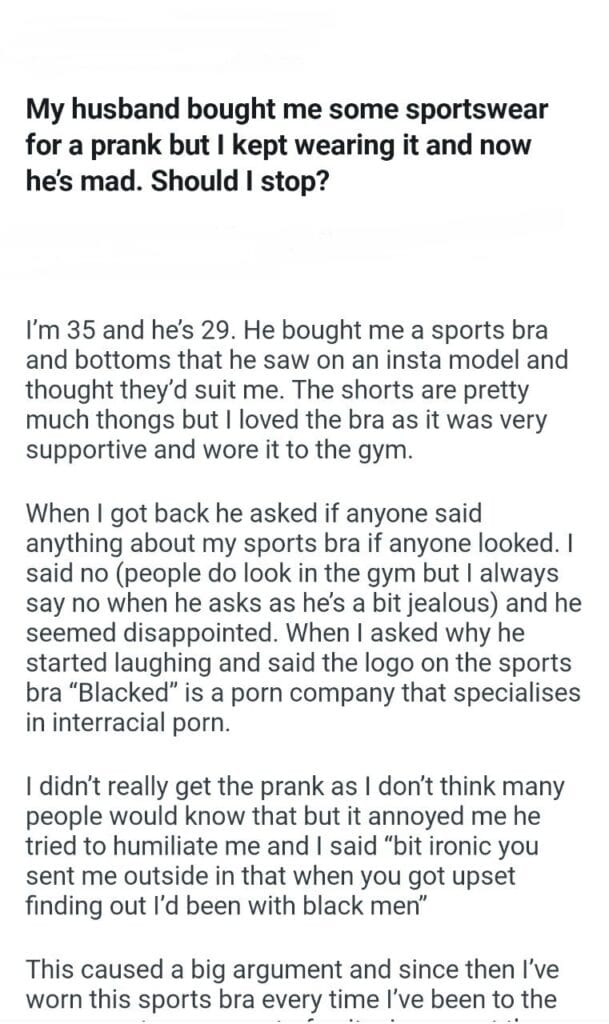 some sportswear Related Posts my dad getting remarried my dad’s house and telling him for not telling my cousin my future salary the office Christmas decorations my in laws name having kids my new apartment with her baby I can’t help Christmas this way business lunch different checkout my husband’s Xbox moving on individual Christmas gifts
